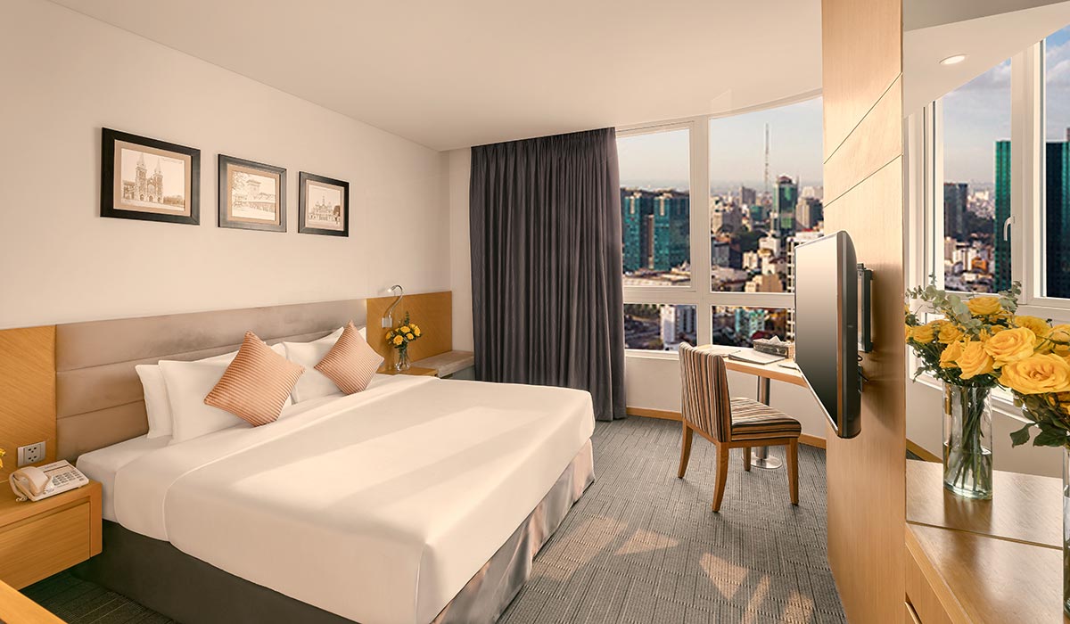 Được trang bị với giường đôi lớn hoặc hai giường đơn, phòng Premier Deluxe được chăm chút về mặt thiết kế để không gian là sự đan xen giữa tiện nghi hiện đại và chi tiết nội thất tinh tế. Khung cảnh Sài Gòn rõ nét và sống động ngay từ cửa sổ cũng là điểm nhấn ấn tượng cho hầu hết các phòng Premier Deluxe.